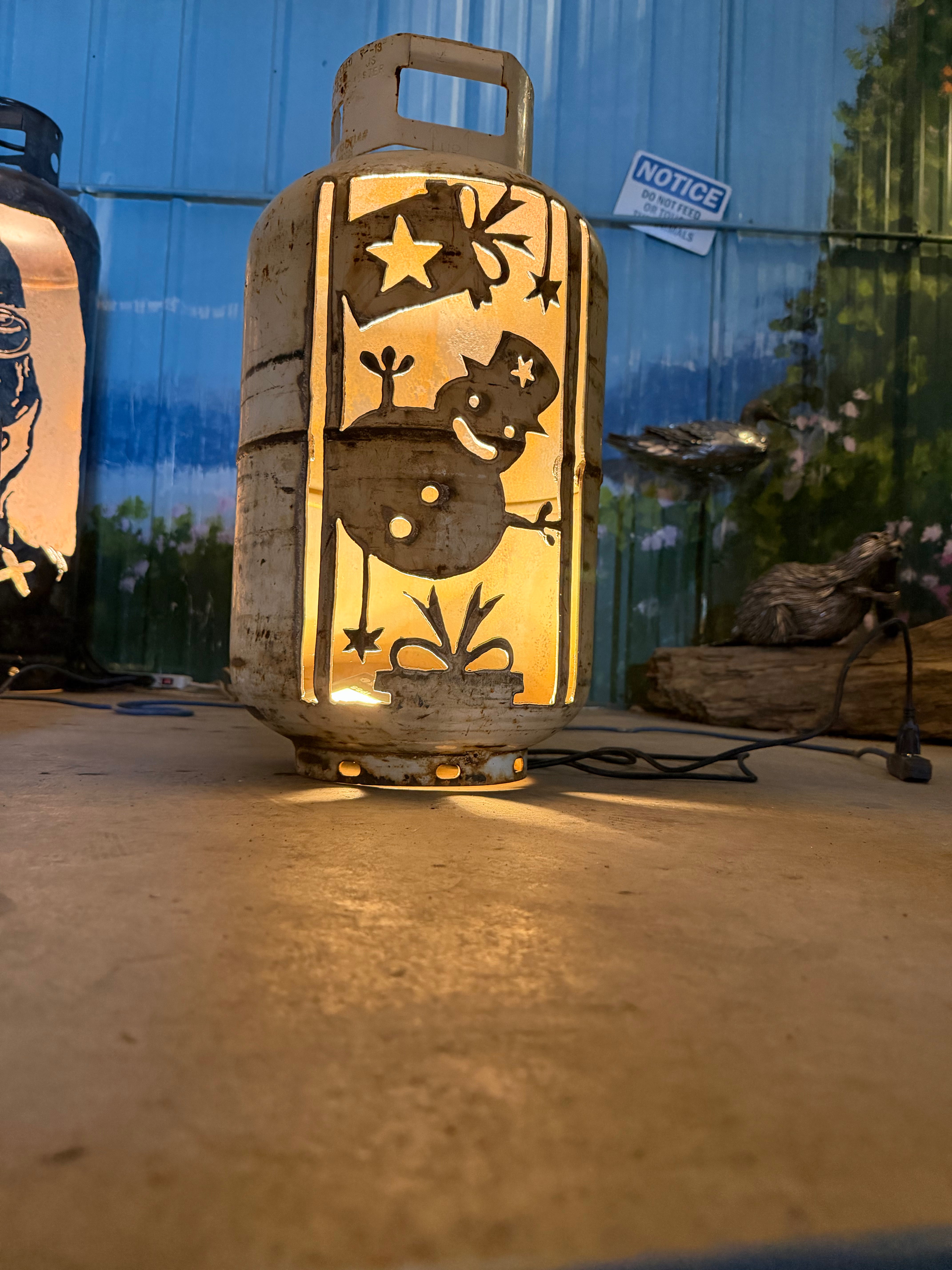 30lb Upcycled Patio Lantern, Snowman VIntage
