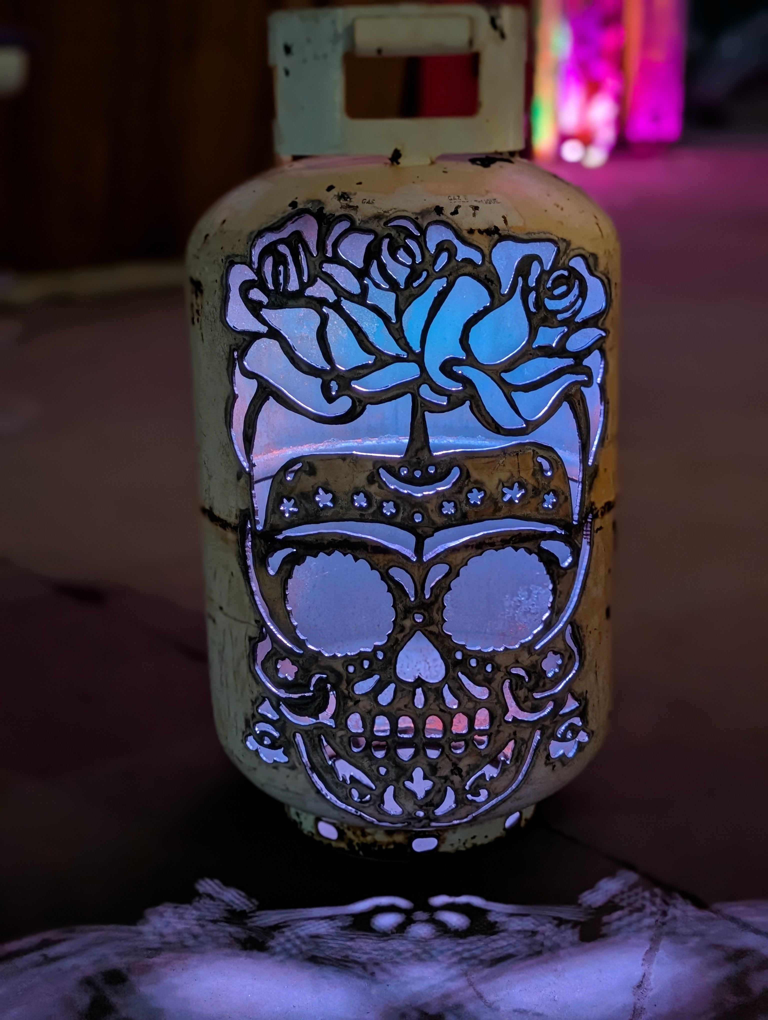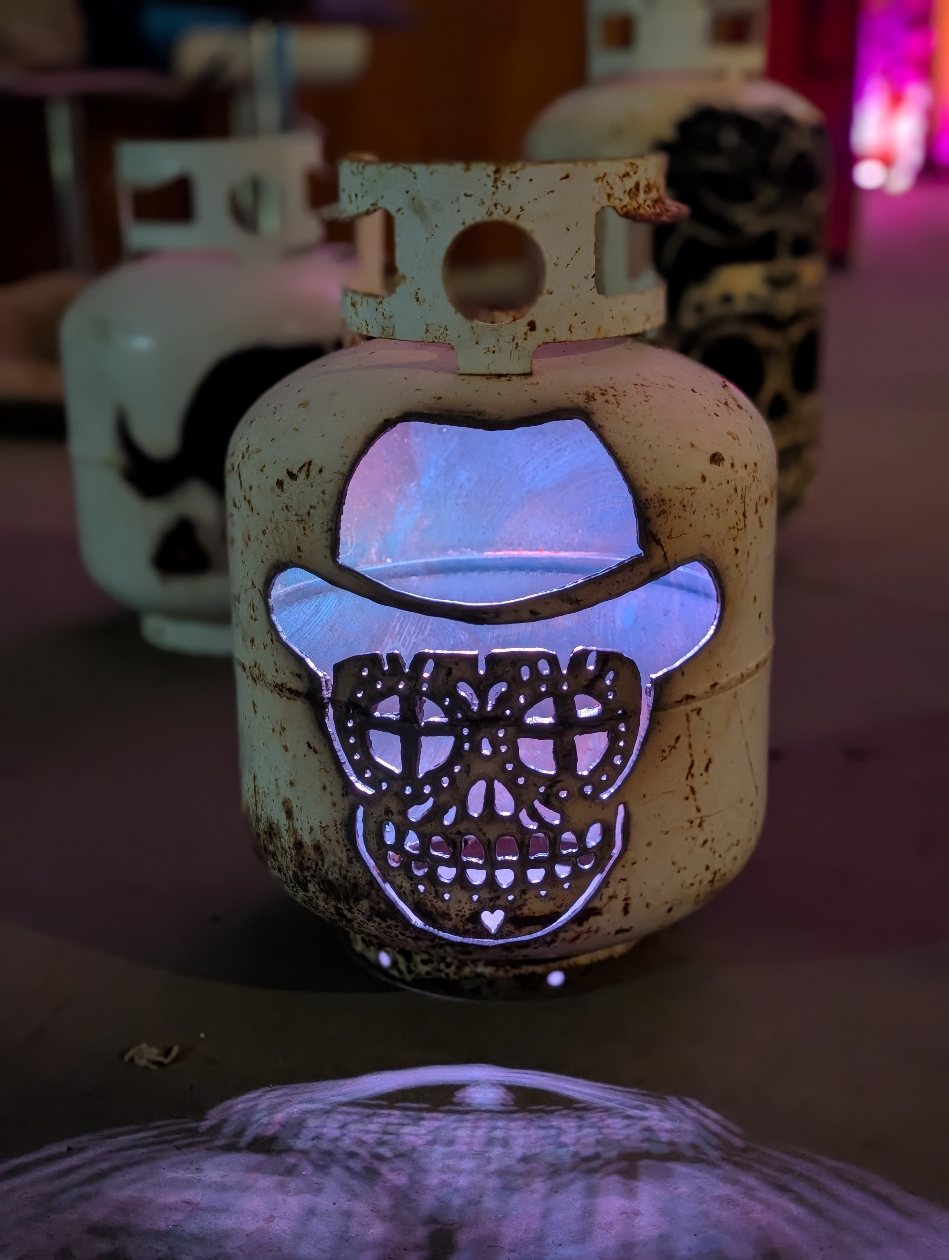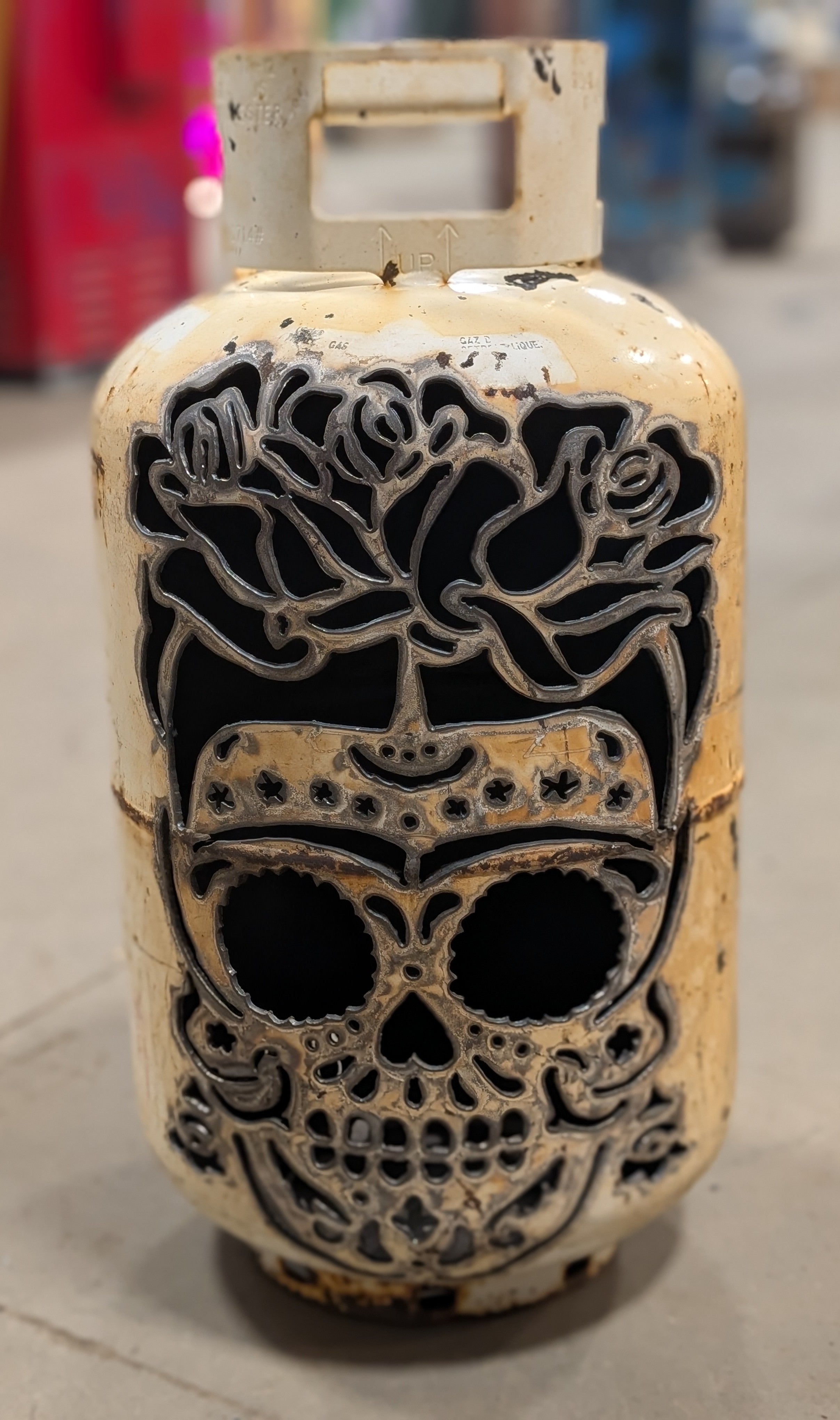 Who says pumpkins have to rot on the porch? These upcycled patio pumpkins bring halloween spirit with a heavy-duty twist. Each retired tank is cut, cleaned, and carved into spooky jack -o'-lanterns, wicked skulls, or eerie haunted faces. The thick cut steel makes them reusable year after year - just drop a LED and watch the glow pour through the cutouts. Perfect for porches, pathways, or even that creepy corner of your yard, they blend rustic salvage with festive fun. A sustainable way to celebrate Halloween, these patio lanterns prove that one person's scrap metal is another's seasonal showstopper!
