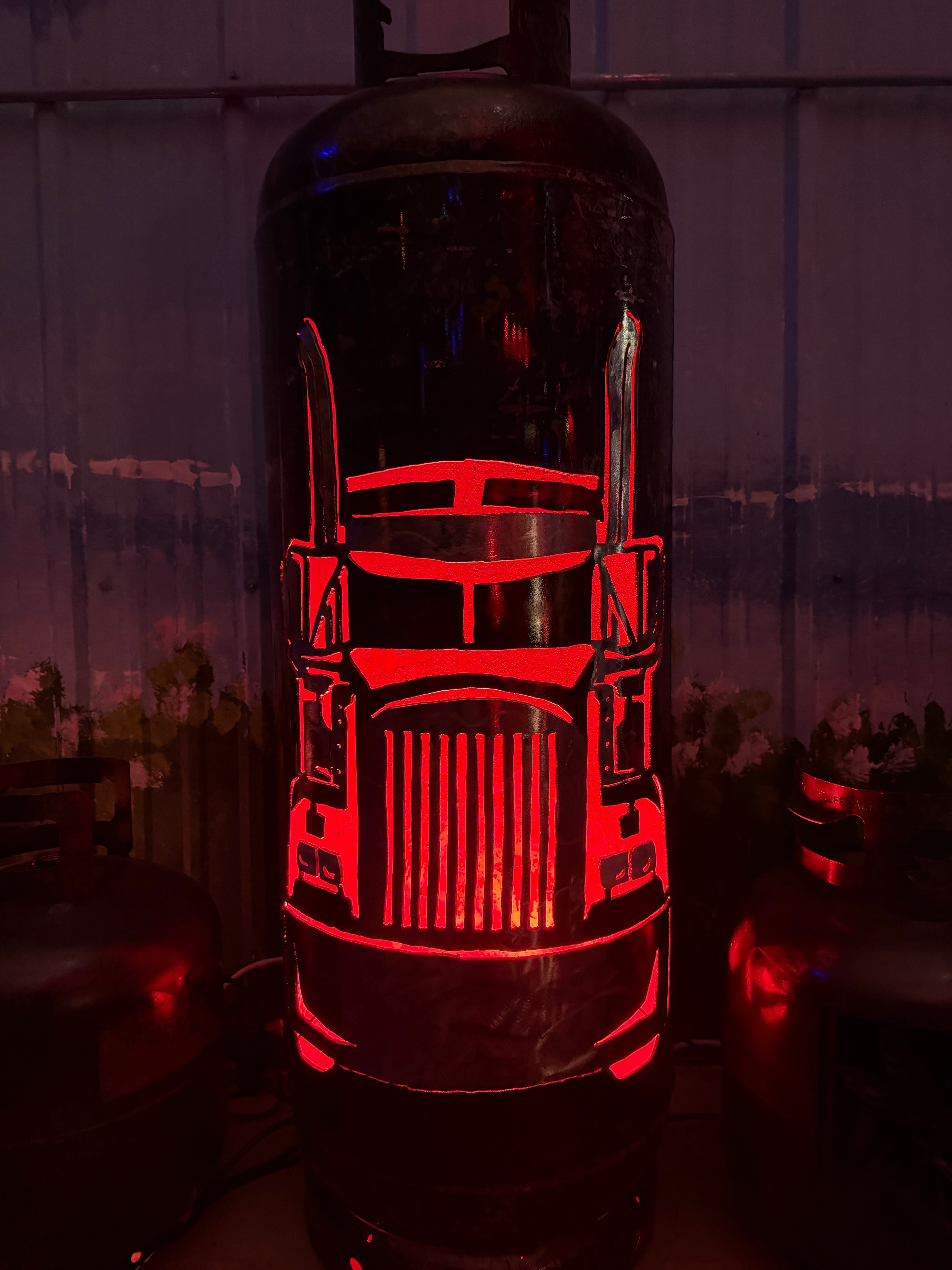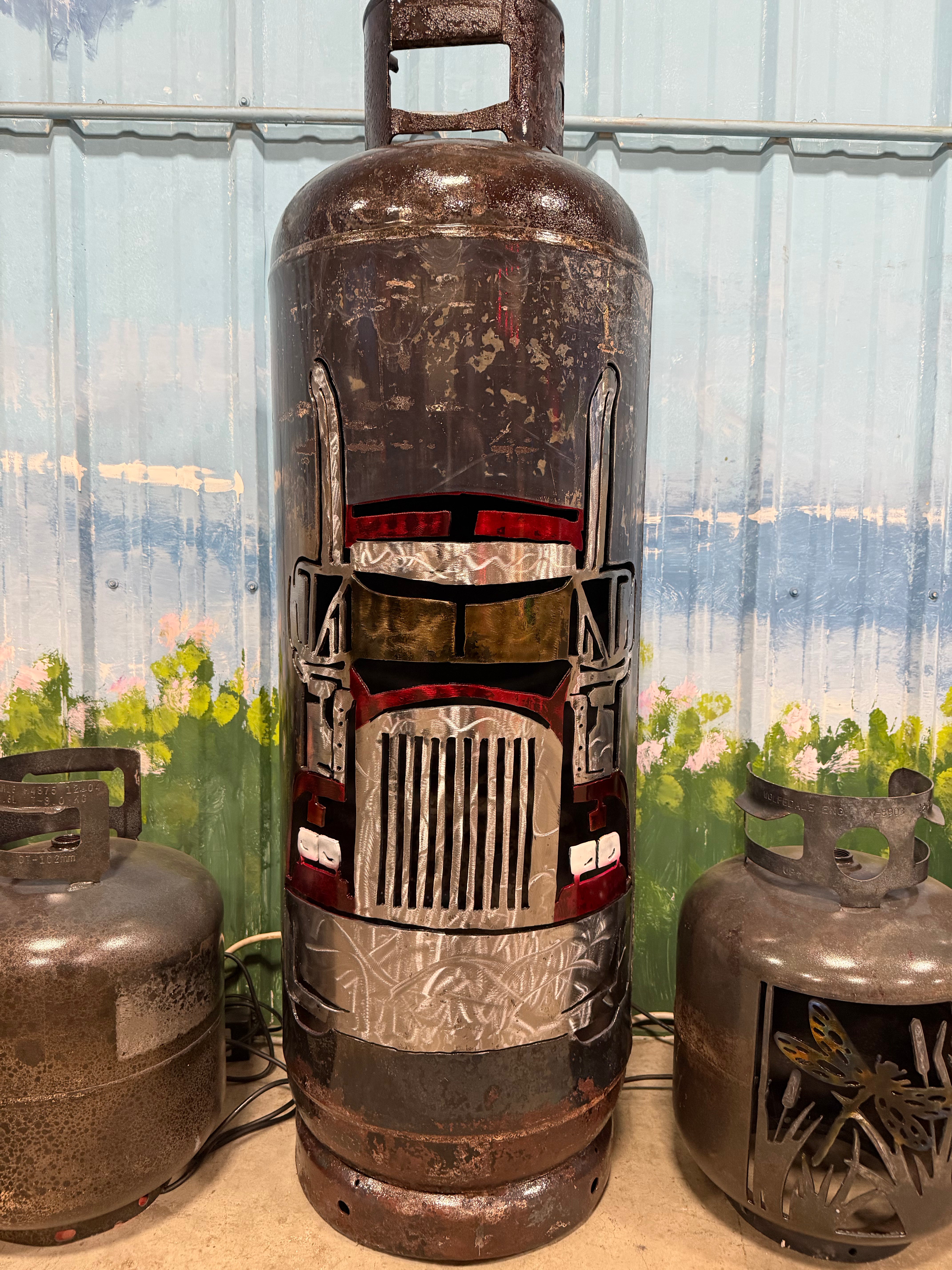 100lb Upcycled Patio Lantern, Kenworth W900, Airbrush Patina