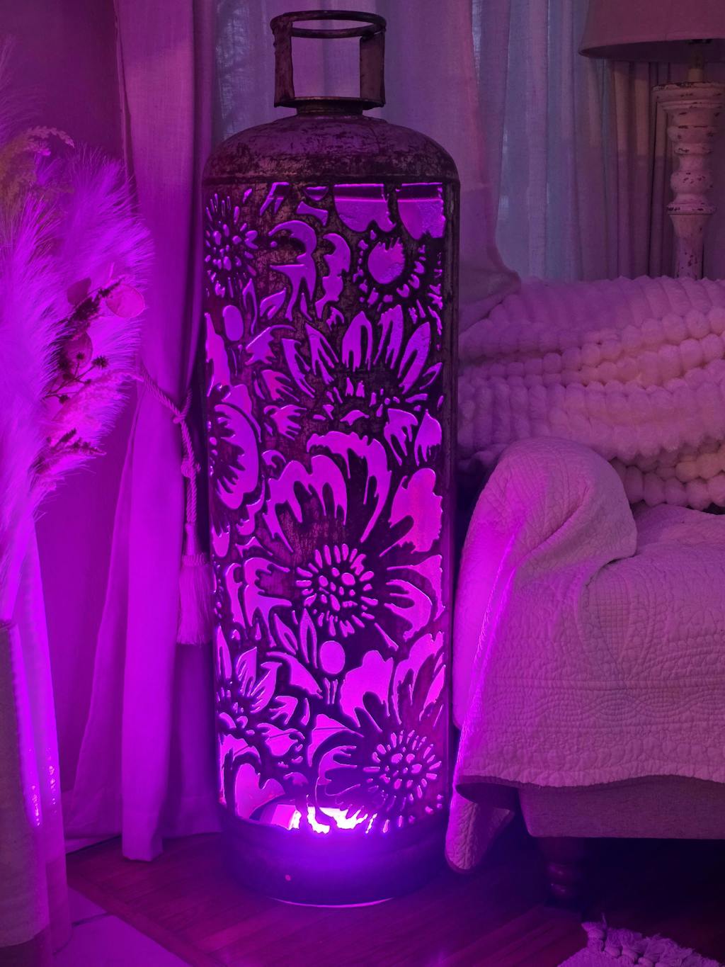 Each lantern is handcrafted from an authentic propane tank that's been safely emptied, cut, cleaned, and transformed into a statement piece that brings warmth, character, and serious conversation-starting vibes to your space.