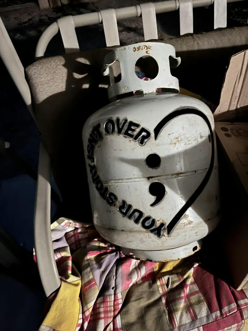 Angela Kleinhenz Super nice! It’s was a gift for my daughter & husband! They loved it & the meaning of the phrase & is perfect for what’s going on in their lives! 💚; super clean cuts in the propane tank!