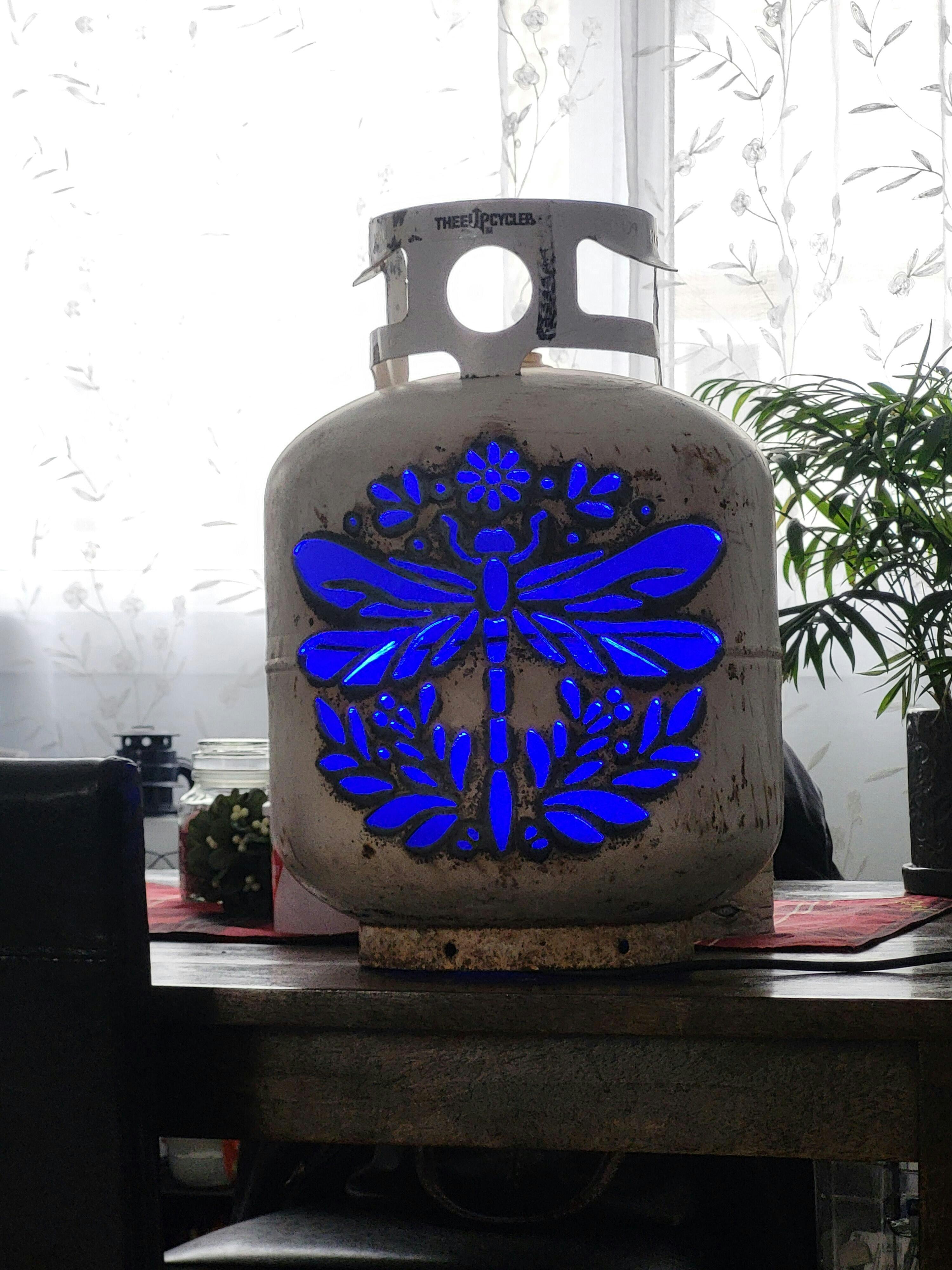 20lb Upcycled Patio Lantern, Nora Dragonfly